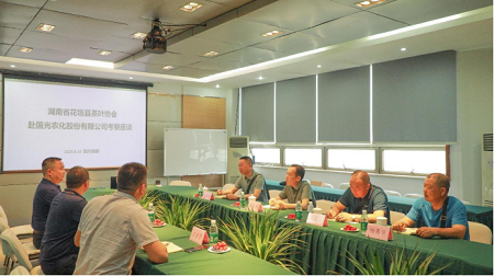 6月12日,湖南省花垣縣茶葉協(xié)會施秘書長一行4人蒞臨國光參觀考察,重點了解國光發(fā)展史、全自動化生產(chǎn)基地、調(diào)控技術研究院等服務現(xiàn)場,我司作物方案部部長及茶葉研究所所長等陪同交流,雙方就“花垣縣茶產(chǎn)業(yè)高質量發(fā)展”召開座談,為后續(xù)公司參與茶產(chǎn)業(yè)標準化、綠色化發(fā)展貢獻調(diào)控力量打下了堅實基礎。