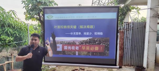 6月14日,國光農(nóng)化在四川省金堂縣召開“國光柑橘全程調(diào)控方案現(xiàn)場觀摩暨夏季修剪培訓會”,104名核心種植戶參會,現(xiàn)場認購國光方案400畝。